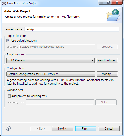 (내가 선택한 디렉토리는 D:\IDE\web이다)
